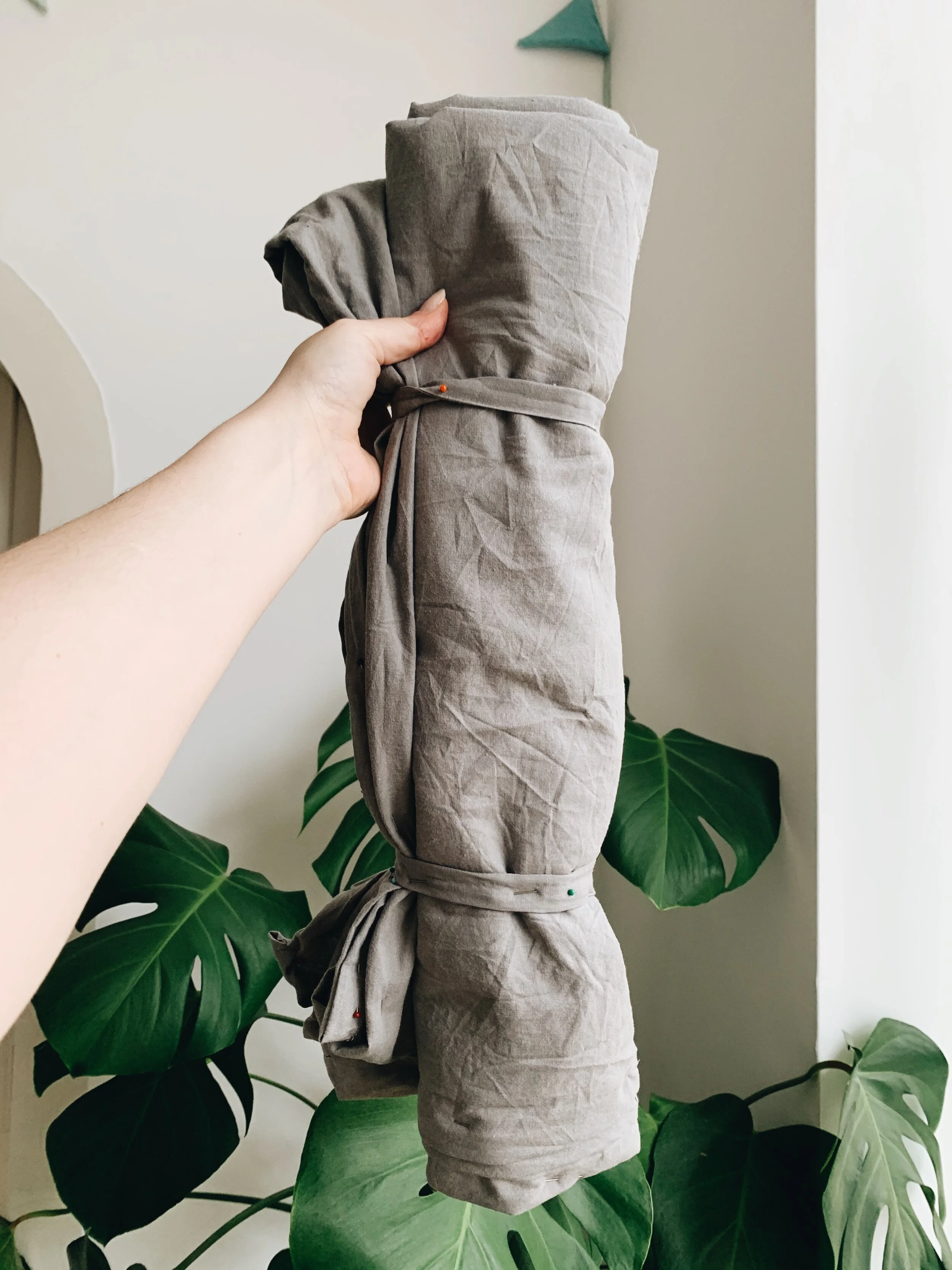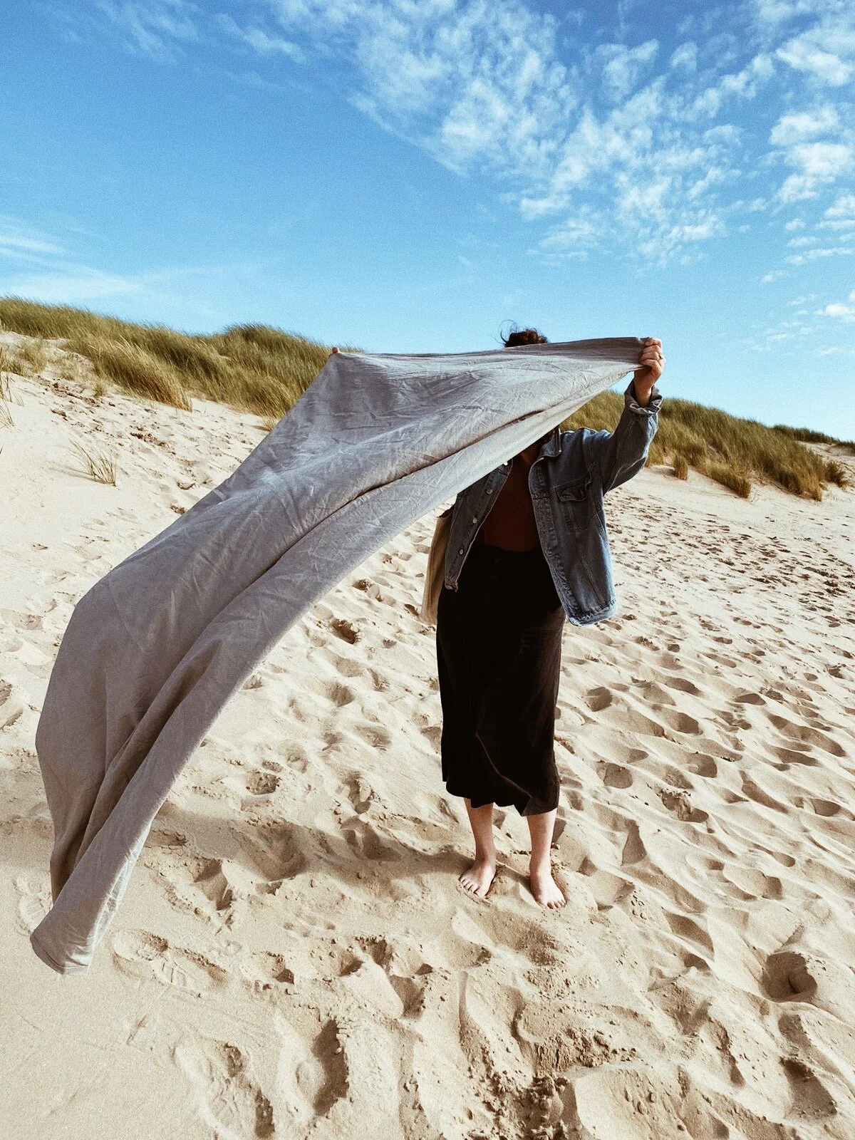 Ik ben al een hele tijd op zoek naar een groot katoenen strandlaken. Ik heb markten afgestruind, op het internet rondgeneusd… Ik kon maar niet vinden wat ik zocht. Uiteindelijk kwam ik op het idee om er zelf eentje te maken! Sinds een jaar heb ik een groter dekbed, waardoor mijn oude dekbedovertrekken niet meer gebruikt worden. Erg jammer, want ze zijn nog super mooi en bruikbaar. Een paar heb ik daarom weggegeven, maar twee overtrekken had ik nog liggen. Waaronder een hele mooie grijze stof! Ik wist het meteen: die ga ik gebruik voor deze DIY!