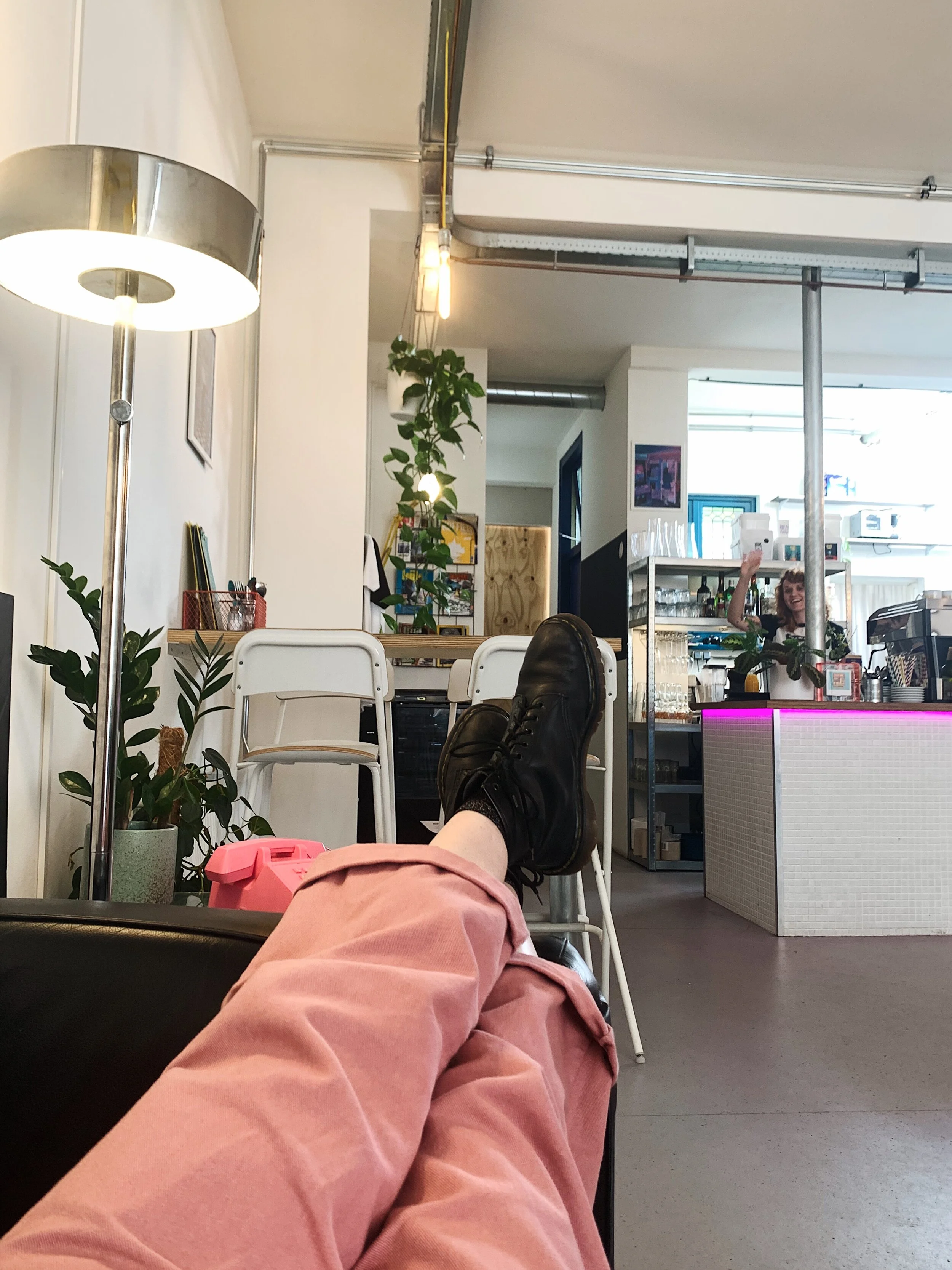 Ik bracht eindelijk weer een paar uurtjes door op een andere favoriete plek in Den Haag, ook wel mijn tweede huiskamer: Haley’s Comet Breakfastclub. Ik zag twee lieve vriendinnen weer eens en ook eigenaresse Britt kwam tijdens haar lunch even (op afstand!) bij ons zitten. Ik was die hele dag zo moe, dat ik op een gegeven moment languit op de bank lag. Nou, dan voel je je écht thuis!