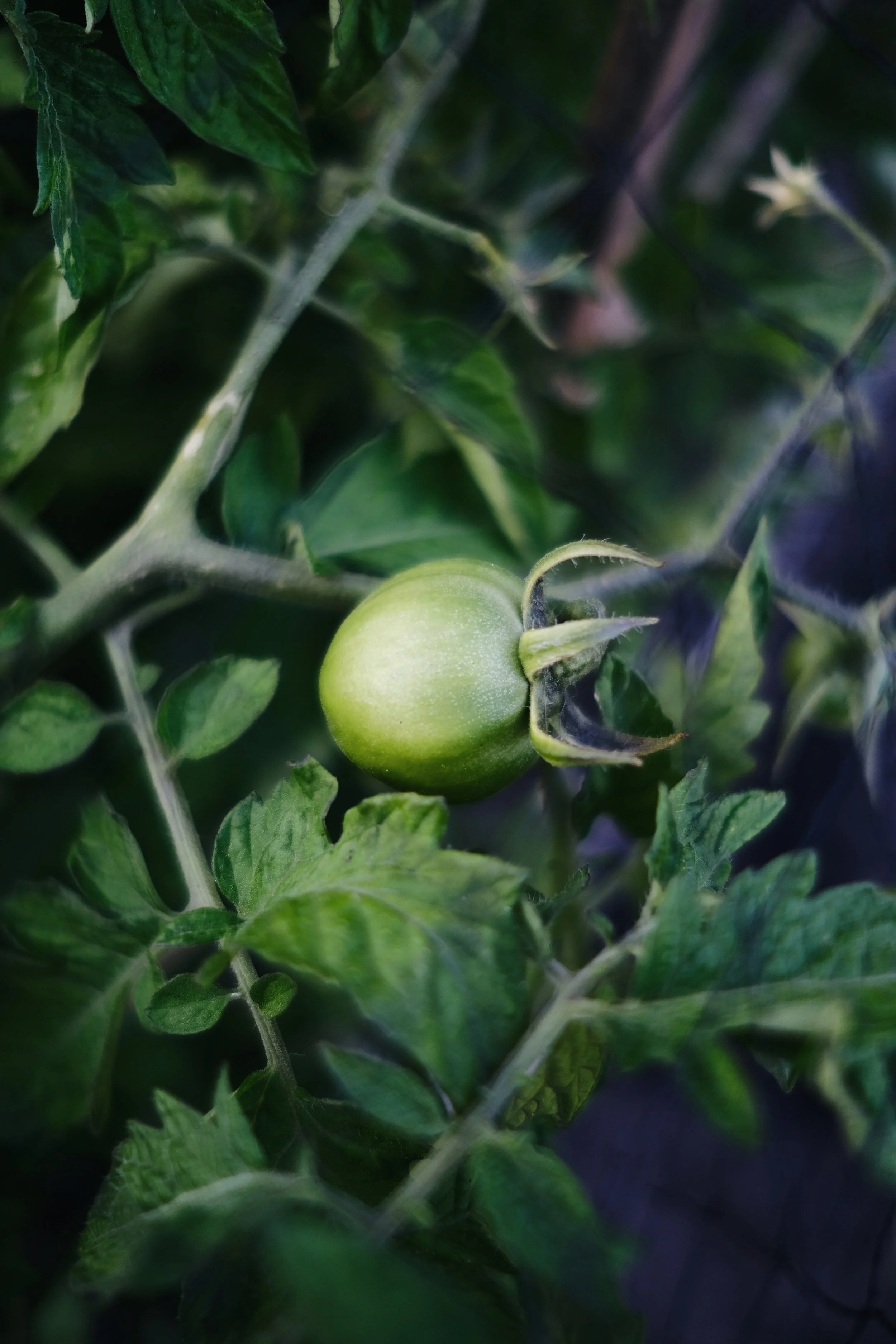 Tot onze grote verrassing waren er steeds meer tomaten tevoorschijn aan het komen. Het “kietelen” van de bloemetjes zal dus zijn (letterlijke) vruchten afgeworpen hebben. De tomatensoort die wij kweken zijn groen, en op deze foto was de tomaat ook al bijna rijp.