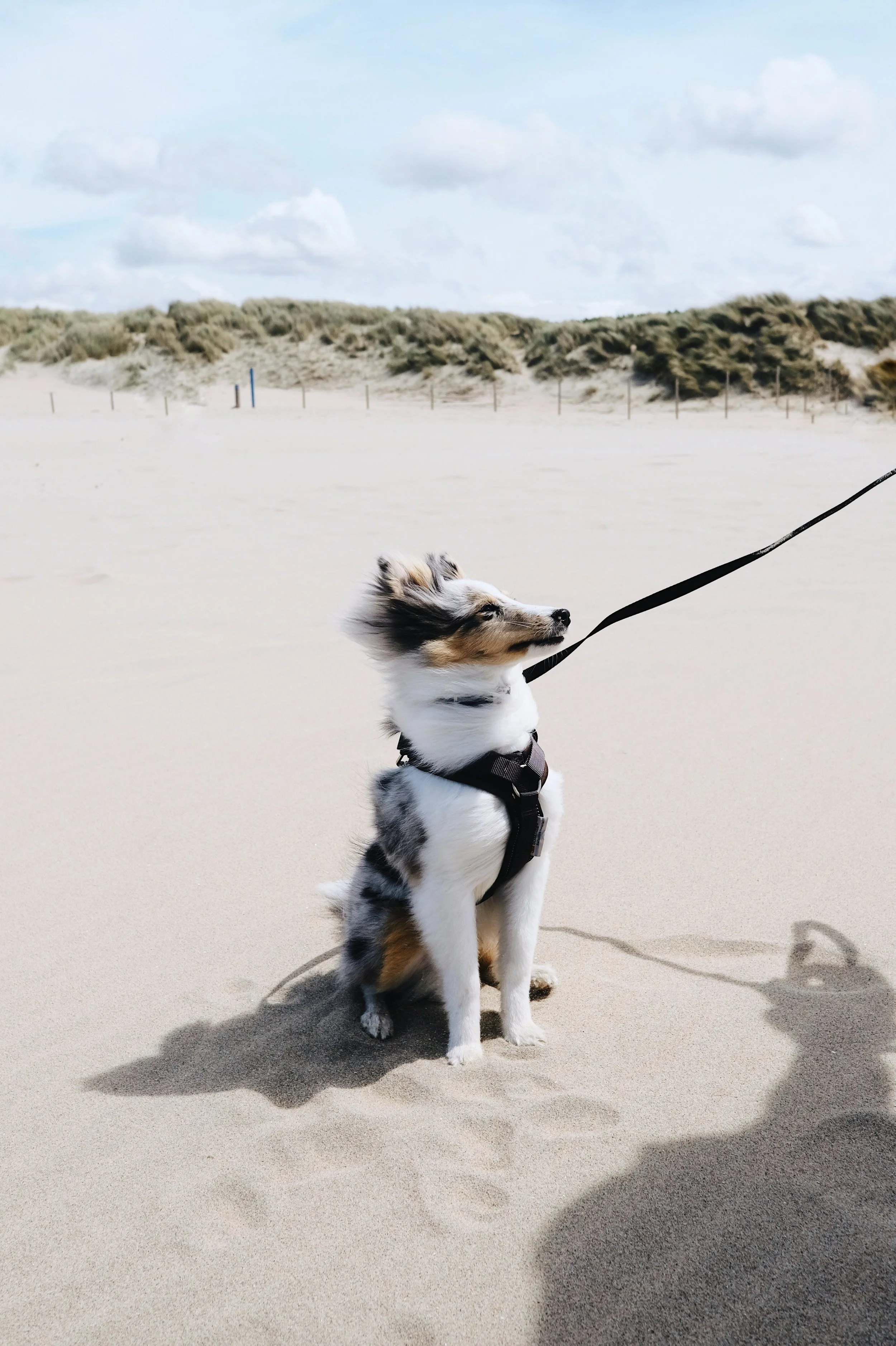 Ondanks dat we zo dichtbij het stand wonen, komen we er eigenlijk (wat mij betreft) niet vaak genoeg. Daarom was het tijd om weer eens te gaan en dit keer namen we Birk weer mee! Hij was slechts één keer eerder mee geweest. Eenmaal aangekomen bij het strand, moesten we hem tillen richting de zee – want het mulle zand is nog te zwaar voor zijn pootjes. Maar eenmaal daar vond hij het hartstikke leuk! Daarna zijn we nog even wat gaan drinken en eten bij een strandtent.
