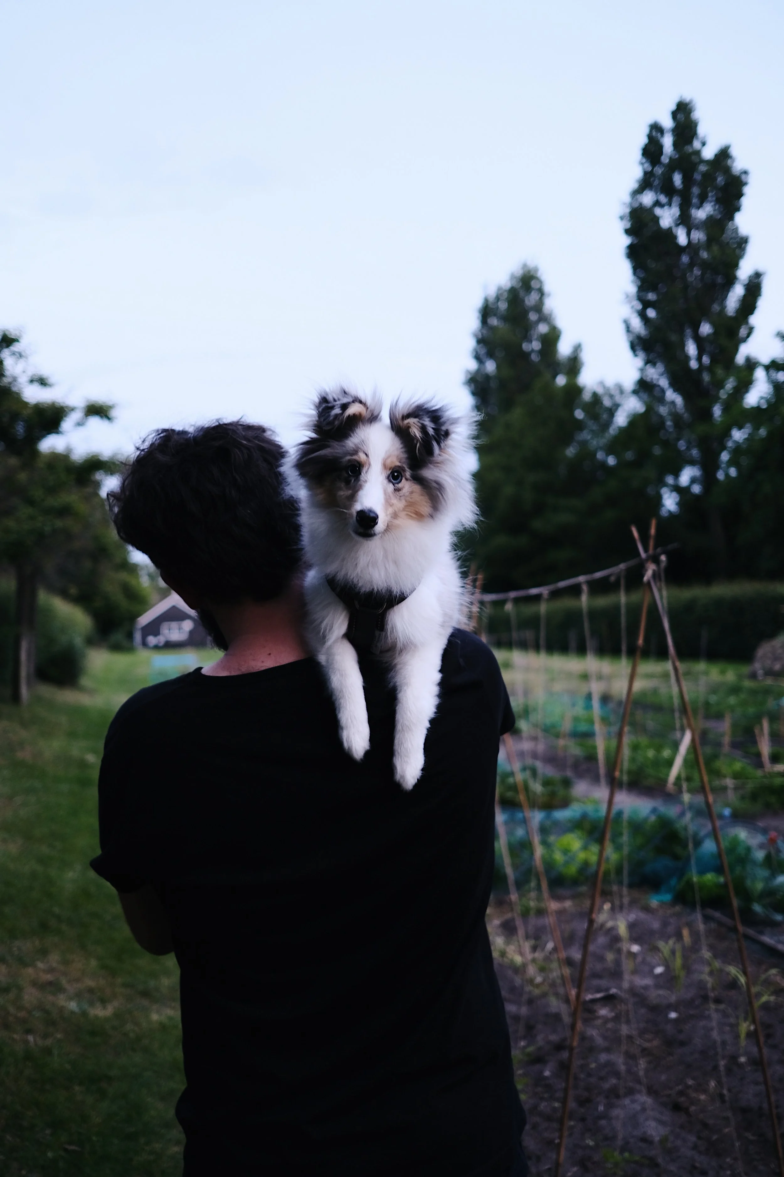 Birk mag eigenlijk het tuintje niet in, maar we wilden hem natuurlijk ook niet alleen laten. Gelukkig is hij klein en licht, dus konden we hem vasthouden. Ik vond dit zo’n lieve foto! Die wilde ik jullie niet onthouden.